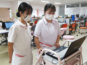 私は一般病棟と重症心身障がい児(者)病棟での経験があります。一般病棟では、多くの知識や技術を学び身に付けることができます。日常業務の中でできる事が増え、自分自身の成長を実感しました。一方、重症心身障がい児(者)病棟では、言葉で思いを伝えられない患者さんの気持ちや体調を、僅かな表情や動きから読み取る観察力とコミュニケーションの大切さと難しさを学びました。コミュニケーションが難しい患者さんでも、時間をかけて関わる事で信頼関係を構築し、その人らしい生活を支えられることに大きな喜びを感じます。