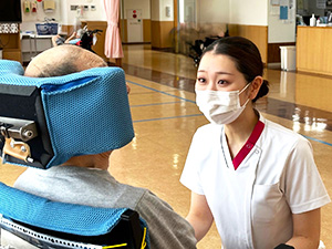 米沢病院は患者さんにとって「生活の場」としての役割を持っています。私は日々のコミュニケーションを通して、患者さんが望む日常の小さな楽しみや思いを汲み取り、看護に繋げられるよう心がけています。自分の行った看護が患者さんの笑顔に繋がった時に看護師としての喜びや、やりがいを感じます。また、日々の関わりが患者さんの生活を支えることに繋がっていると感じ、患者さん一人ひとりの生活や人生に関わることのできる看護になることができてよかったと改めて実感しています。